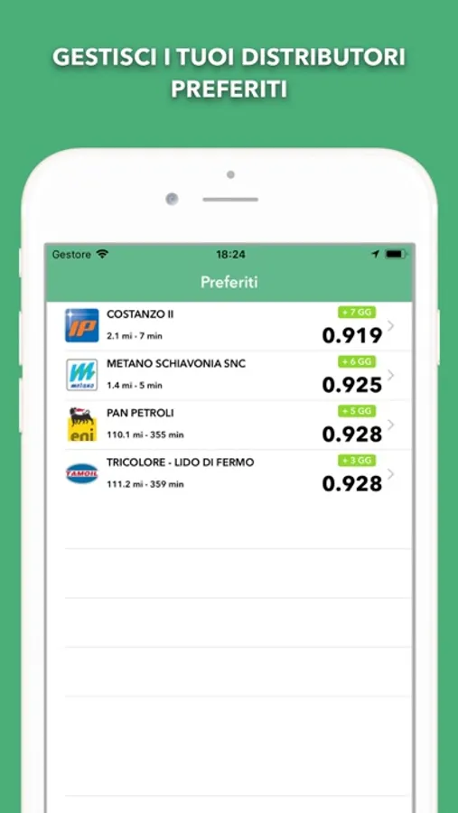 • View all the Italian gas stations closest to you on the map, the price will be visible and coloured.