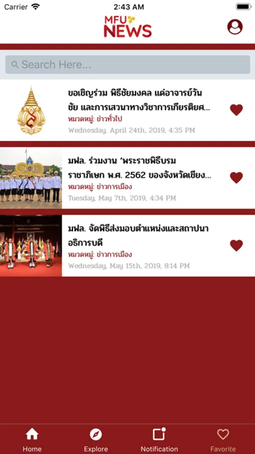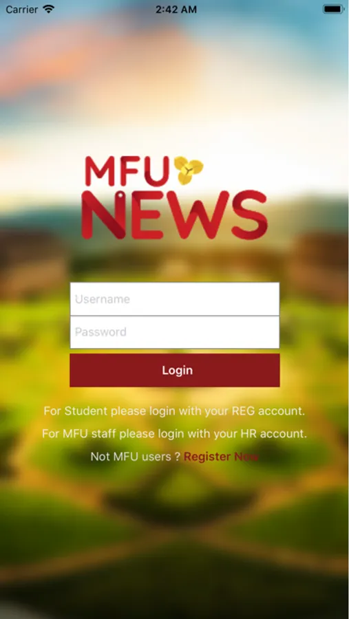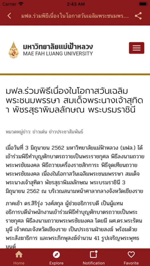 Application ติดตามข่าวสารมหาวิทยาลัยแม่ฟ้าหลวงโดยแสดงข่าวแยกตามหมวดหมู่ที่สนใจ นักศึกษา บุคคลากร และบุคคลภายนอกสามารถ สมัครสมาชิกและใช้งาน application เพื่อติดตามข่าวสารได้