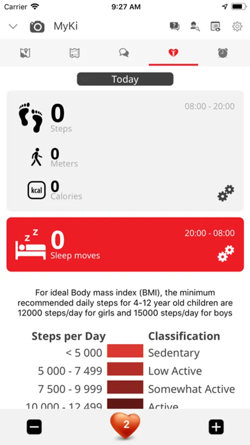 Health function: This function counts the steps of your child and based on standard measures, brings back full information for the number of steps, passed meters and burned calories during the day.