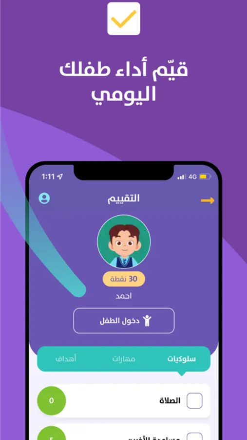 تطبيق تربوي مُساعد للمربي و أداة تعين الطفل على تكوين العادات المرغوبة.