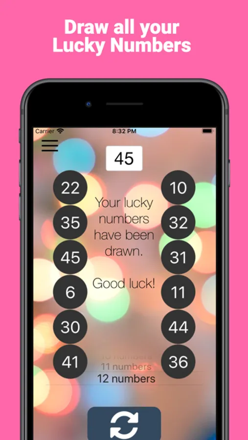 4. Lucky Numbers: Generate up to 12 lucky numbers at a time, for example, 6 lucky numbers from between 1 and 45.