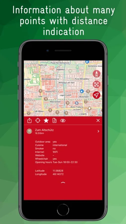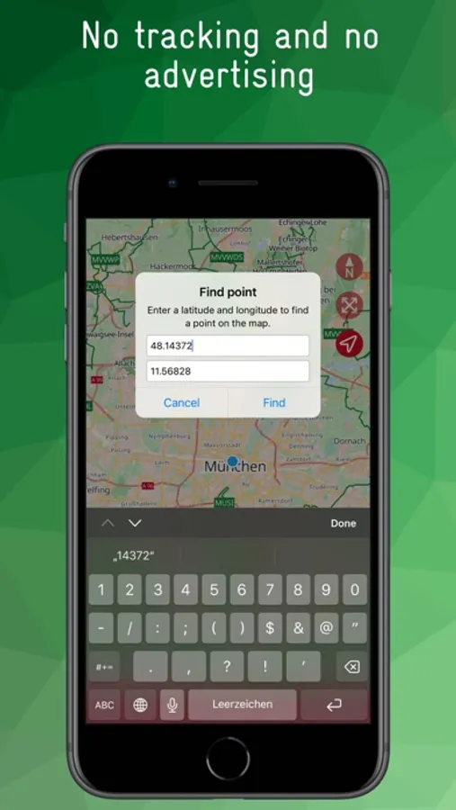 A location function shows the current position, the app is ad-free and there is no tracking.