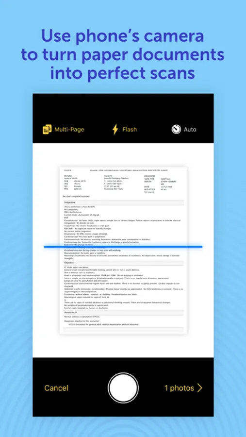- Use the camera on your phone to perfectly scan paper documents. Sync.MD automatically crops, straightens and saves it into your Health Record