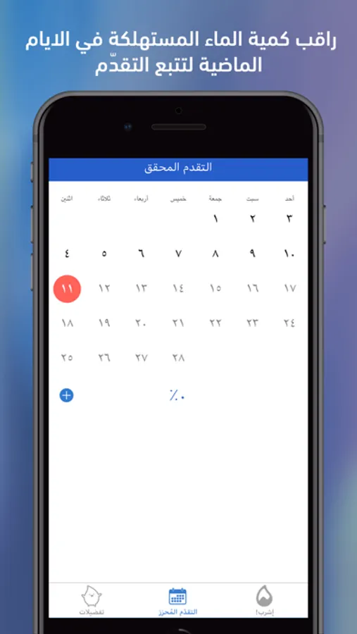 يظهر لك كمية المياه التي شربها على مدار السنة من خلال رزنامة