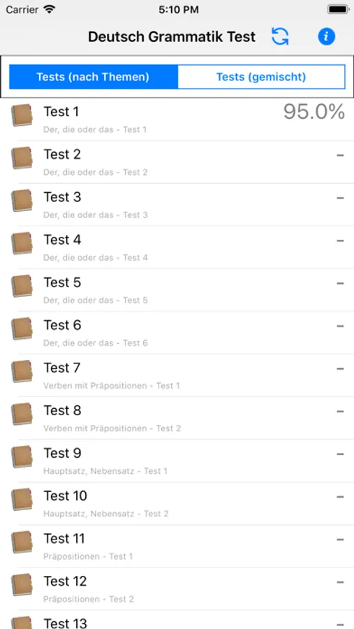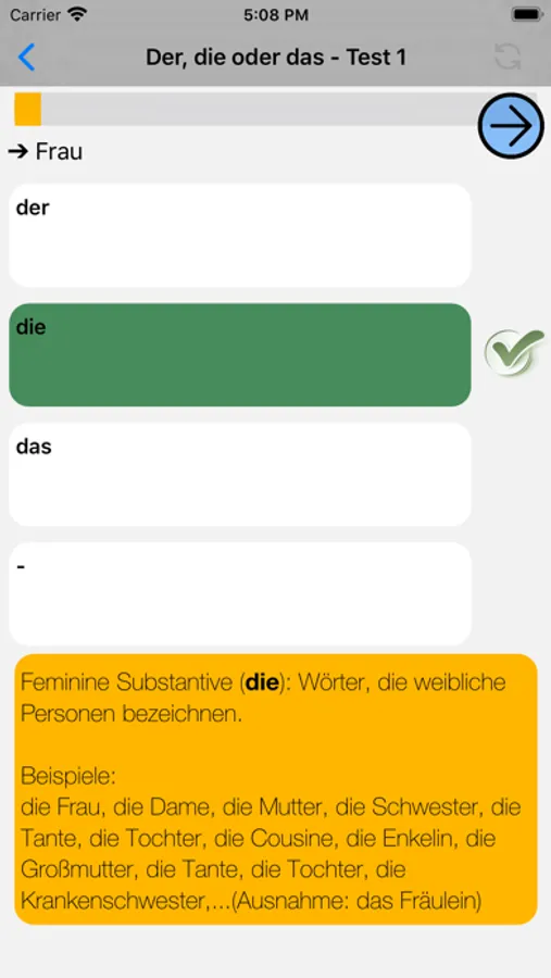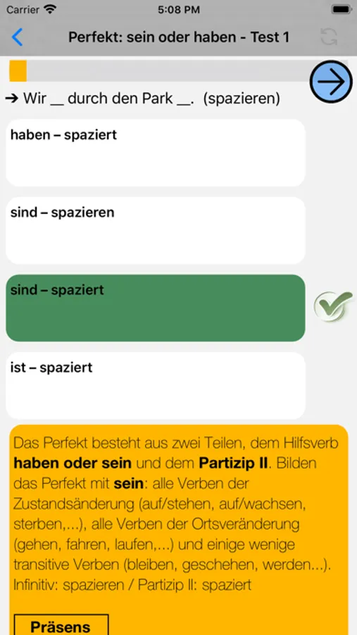 German Grammar Test is a free grammar practice app designed to help improve German grammar accuracy. The app offers 1000s of questions to help practice and reinforce your German grammar skills. It is FREE and works 100% OFFLINE.