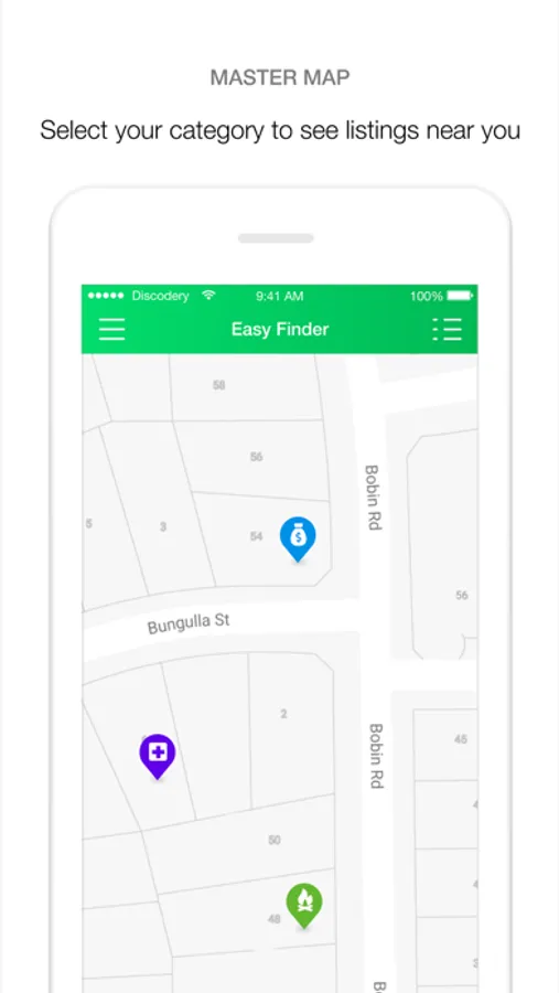 EasyFinder is your key to unlock services available in your area! For example, select restaurants from the category list. Then, press "Show". Immediately, you will be presented with a map showing the restaurants near you. Touch the icon to reveal the name of the restaurant. Need more information? Use our list feature to view pictures, ratings, tips, address,and phone number.