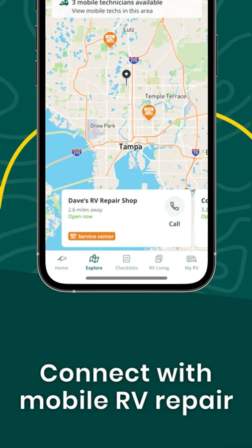 Use the Explore feature to find what’s near campgrounds and RV parks like restaurants, parks, and attractions. And use the Find Service feature to locate nearby service centers and mobile technicians while camping.