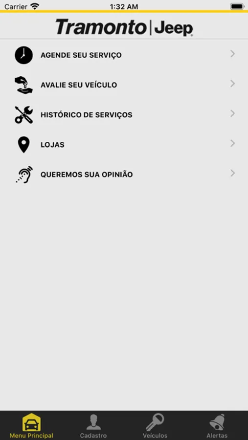 Aplicativo da rede de concessionárias Tramonto Jeep. Baixe agora mesmo o aplicativo e tenha acesso a agendamento on-line, consulta de histórico de serviços realizados e avaliação do seu veículo. Além disso a Tramonto ajudará você a lembrar das manutenções, vencimento da sua habilitação, vencimento do IPVA e seguro do seu veículo.