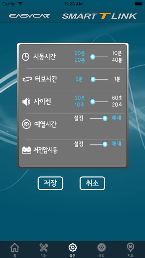 - 시동시간, 터보시간, 사이렌, 예열시간 조정 및 저전압시동 설정