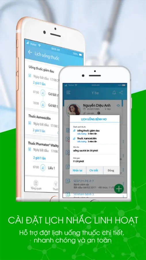 - Lịch nhắc: Giúp người bệnh uống thuốc theo đúng lịch và đúng liều lượng.