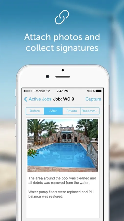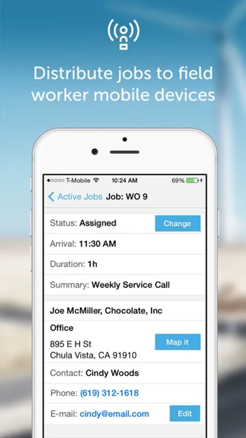 With the ServiceBridge mobile app, you can instantly distribute job and customer information to field workers, automatically inform your field workers of new assignments and changes to their schedules, and receive job updates made from the field. You can also access photos and signed documents, as well as capture payment information from the field.