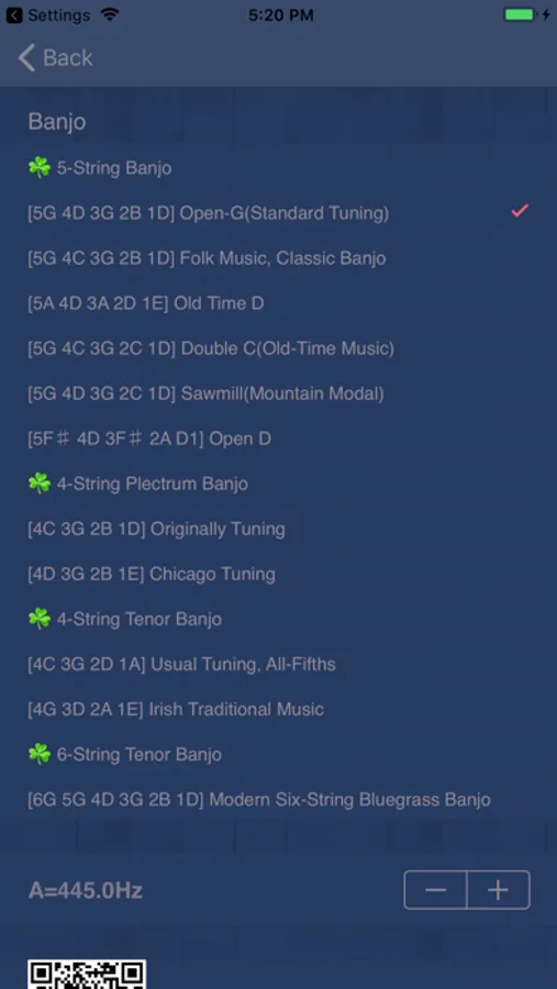 App is easy to use, pluck a string of Banjo, as the sound goes into the mobile phone, App will accurately identify the string and the deviation of frequency in cents.