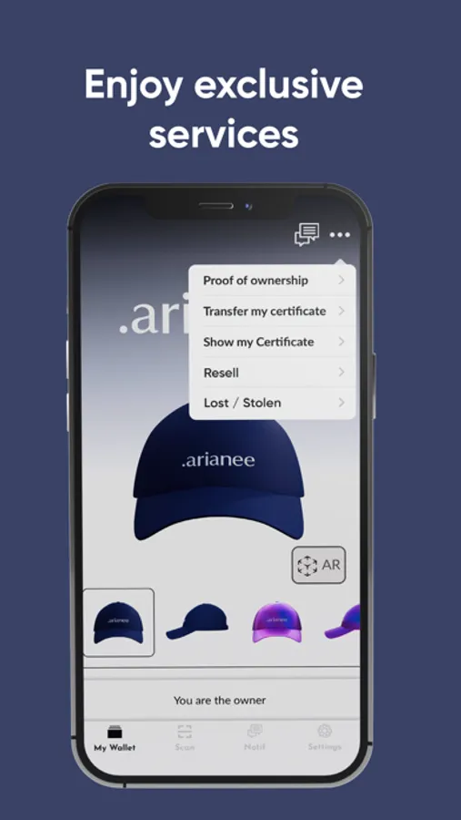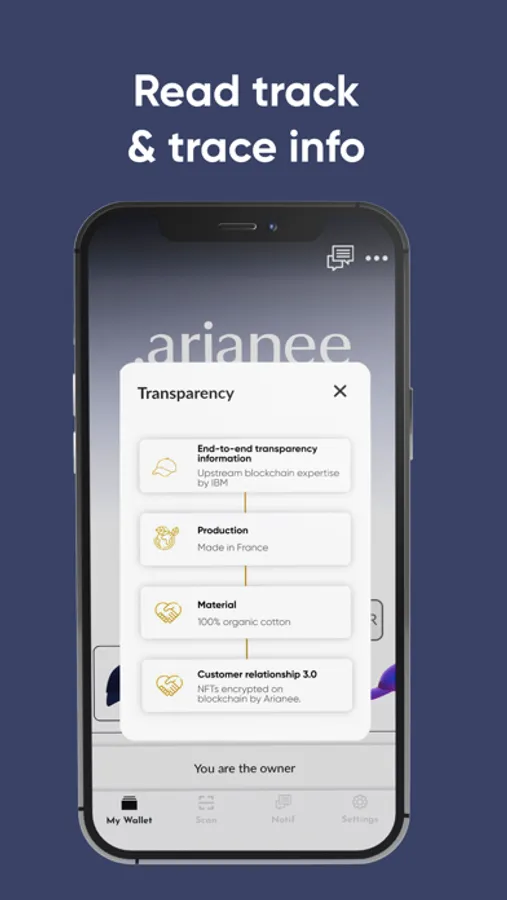 Arianee Wallet is a seamless, secure way to store your NFTs and explore the various possibilities NFTs offer. It is your gateway to the various experiences across channels: physical - digital - metaverse.