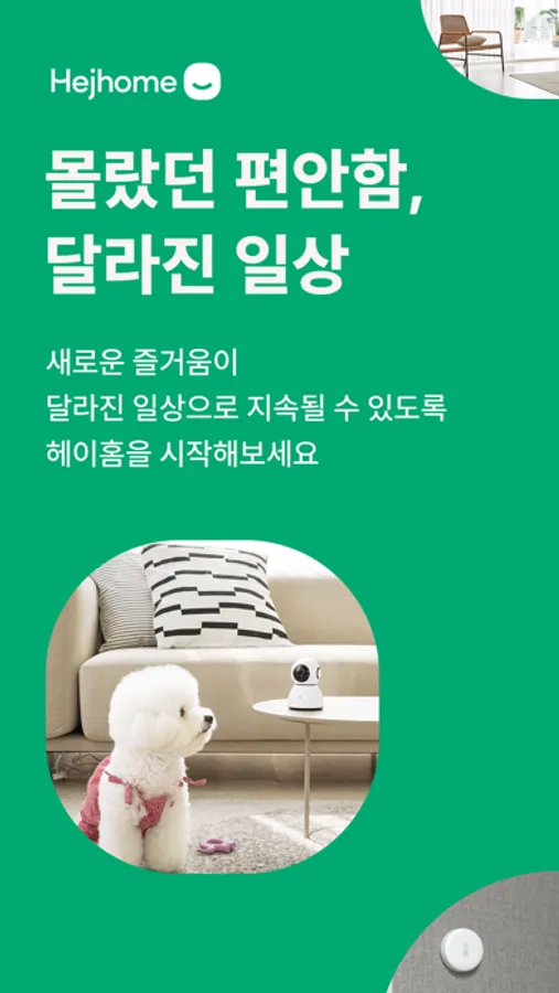 헤이홈 앱은 조명, 전원, 보안, 센서 등 다양한 스마트 제품을 하나의 앱으로 이용할 수 있는 스마트홈 서비스를 제공합니다.