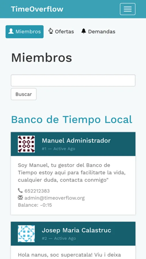 * Los miembros de un Banco de Tiempo pueden acceder al sistema y contactar con otros miembros