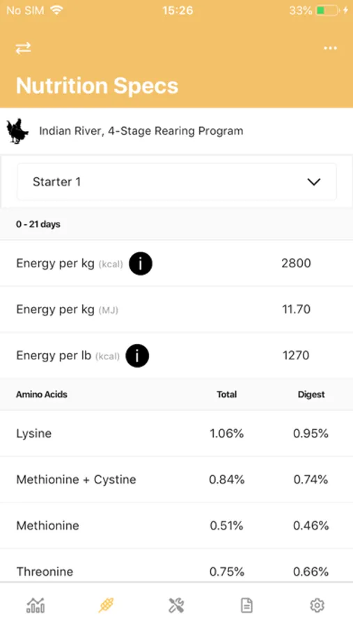 Get the best out of your flock’s performance; with immediate access to information such as Performance Objectives and Nutrition Specifications – all customizable to the unique needs of your Breeder and Broiler flocks. Various tools allow you calculate meat yield, Production Efficiency Factor, dates per flock age and more. Choose your preferred language, region, measurement system, product type and other settings for a highly personalized experience.