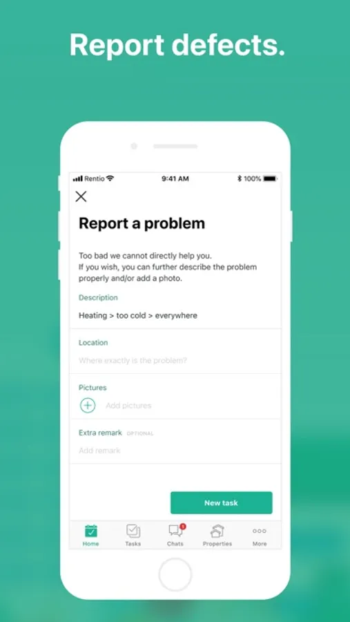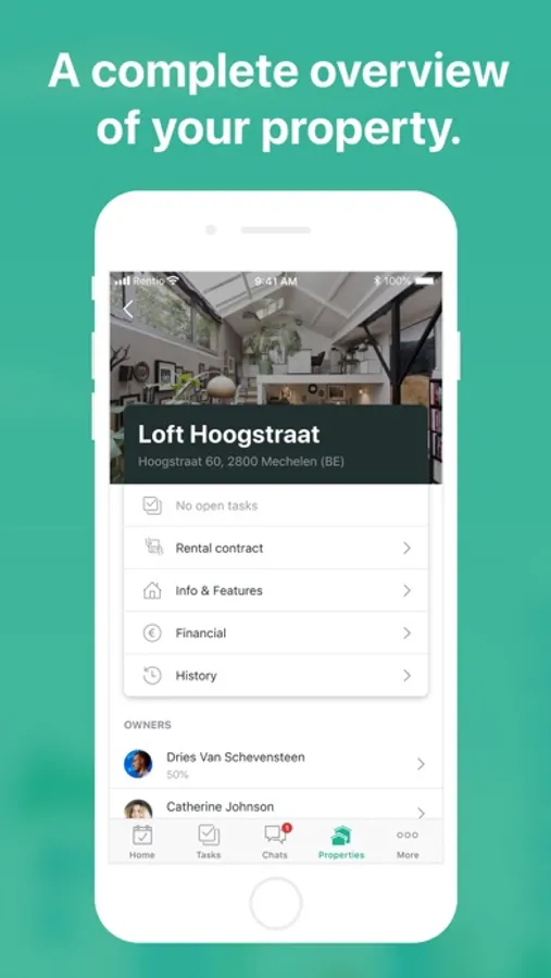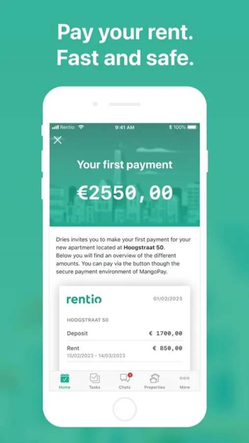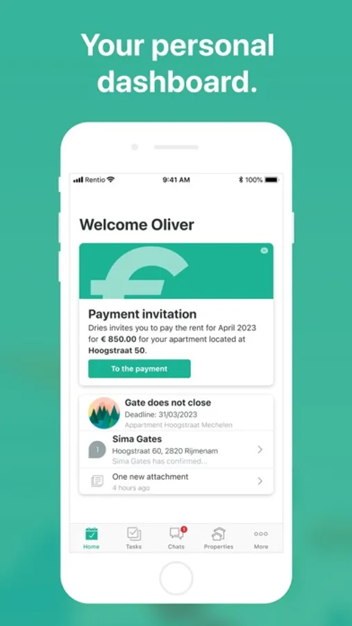 As a tenant you can easily pay your rent, report problems with photos and descriptions, follow tasks of the manager or owner, chat with co-tenants and owner, view your contract, etc. In short, you can do everything that is important in your home with your smartphone.