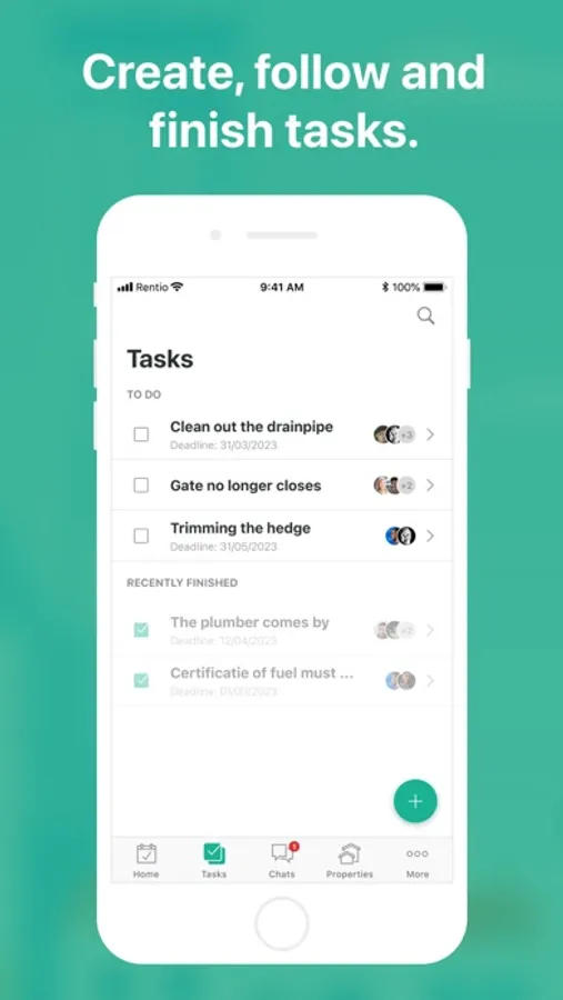 Rent smarter with Rentio. With this app you as a landlord or manager can follow up payments, automatically index your contracts, chat with tenants, create/receive/follow up tasks, handle reported problems, create contract info,…. In addition, outstanding payments are automatically summoned and tracked by Rentio. In short, manage your real estate mobile and fast.