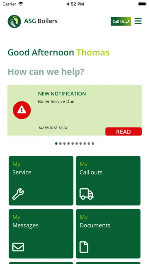 The App allows for secure messaging, you can request a service or report a fault. The App will tell you when your next boiler service is due. Finally any documents related to your account can be accessed.