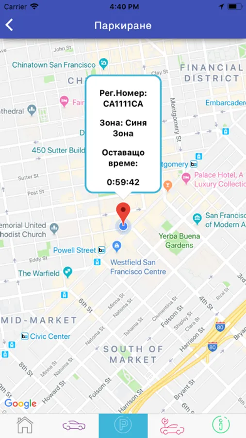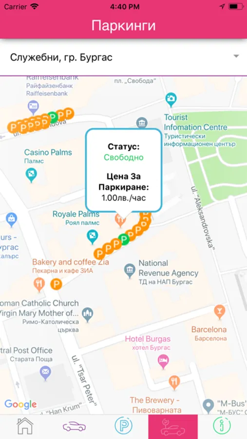- Има възможност чрез избиране на дадено паркомясто, приложението да ви навигира до самото паркомясто.