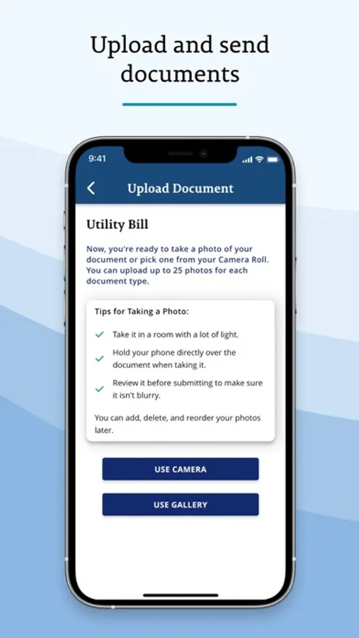 • Upload photos of the files or forms we need from you