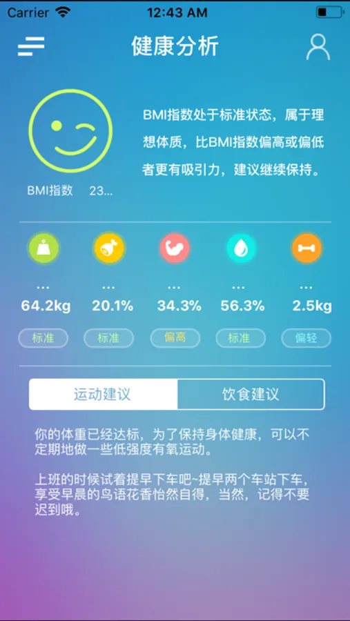 AirScale U 应用程序可以利用蓝牙传输技术,将电子秤里面的称重数据传输到您的 iPhone 设备上面,并给出简单的身体成分分析,例如:体重、脂肪、骨重、肌肉量和水分,让您在称重过程中充满乐趣。