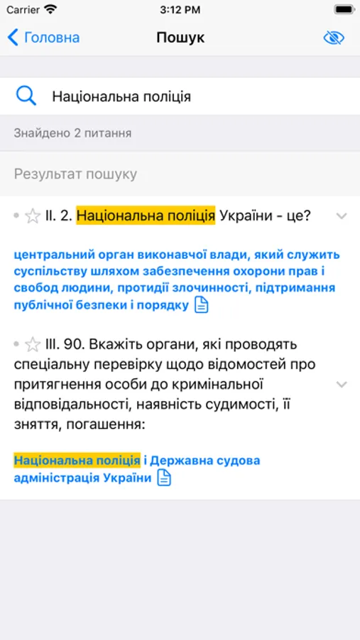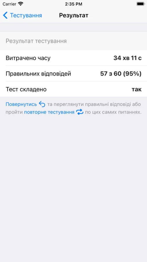 - Зручний пошук та перегляд відповідей без проходження тестування;