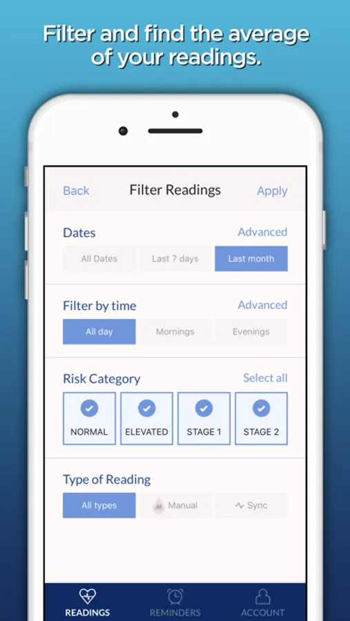 •Set reminders to take your blood pressure readings so you can stay accountable and track results.