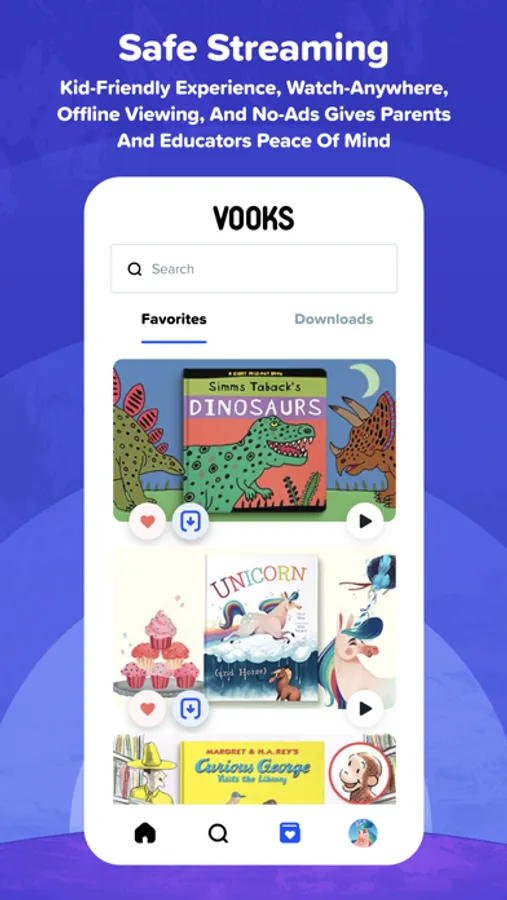 The Vooks app provides a safe, child-friendly viewing experience for all ages. Carefully selected family-friendly books that will engage and promote imagination. Ad-free, quality screen time you can feel good about.