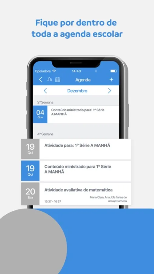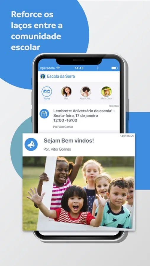 Com este aplicativo, os pais, responsáveis e professores poderão receber as últimas informações da escola, as notícias do dia a dia do seus filhos e o calendário de atividades escolares.