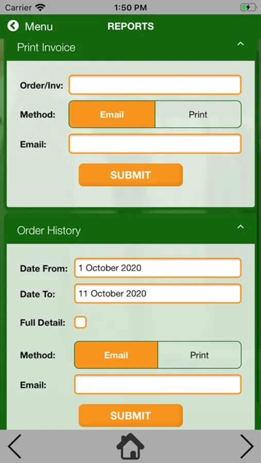 Create order for pickup/delivery check history update information.