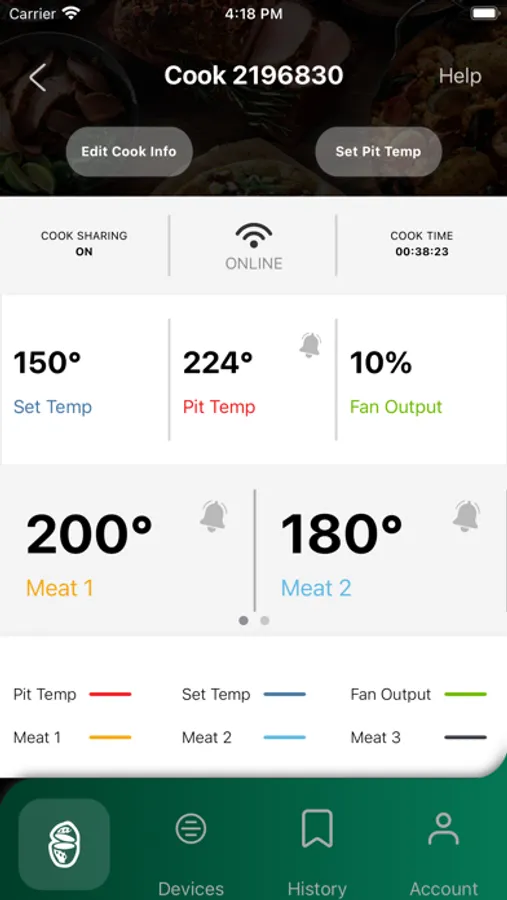 Remotely manage and monitor cooking temperatures, monitor the temperature of your food, view graphs of your cooks and receive alerts when your cook is finished or when the EGG temperature is too high or low.