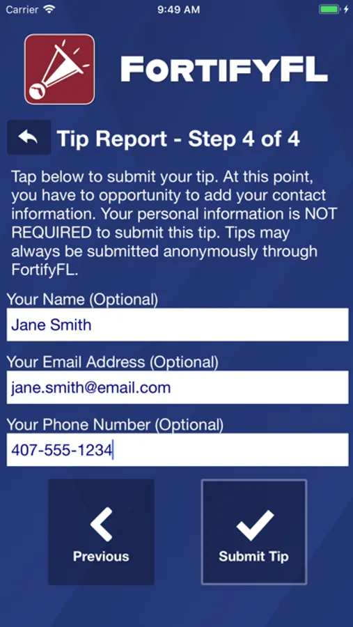 By accessing FortifyFL, students can provide a description of the threat, share pics and videos and submit contact information (if he/she chooses to receive follow-up from law enforcement or school officials). Once information is transmitted via the application, the appropriate law enforcement and school administration entities are instantly contacted and provided with the submitted material.