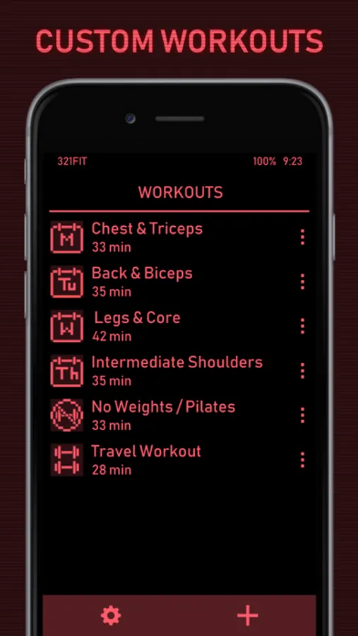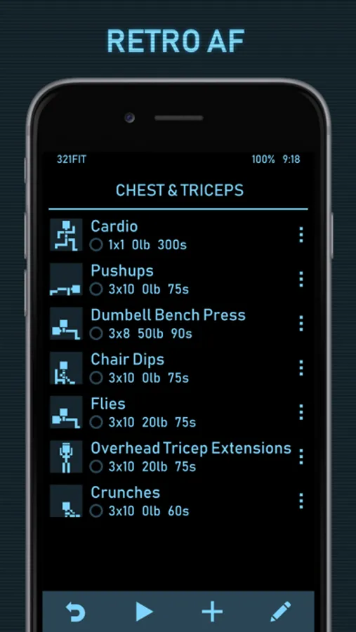 Press PLAY to let the app tell you what to do so you can think less and do more. The app shows you the TIME, SETS, REPS, and WEIGHT for each exercise. Audio cues will play to notify to let the user know when a set is about to end, and when a new set or exercise begins. EVERYTHING is timed. This allows you to maximize your time in the gym while knowing exactly what time you’ll be finished with your workout with 321FIT's one of a kind ETA display.