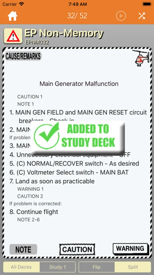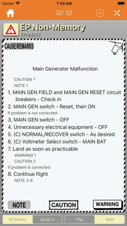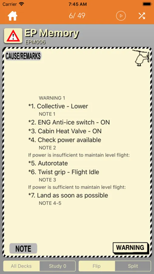 Have a few minutes to get in a quick study session but don’t have your flashcards with you? Not any more! With this mobile education application, you’ll be able to study or refresh your knowledge anytime you have your mobile device with you. This elegantly simple yet dynamically powerful application dives directly into the aircraft’s emergency procedures and operational limits. Each flashcard contains several ways from which you can study or check your knowledge recall abilities. Card features include: