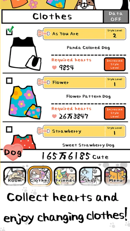 Tap the screen to pet Dog, and your affection will appear as hearts!