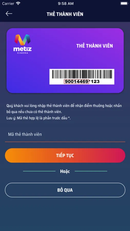 5. Đăng nhập và xem thông tin tài khoản Metiz Membership.