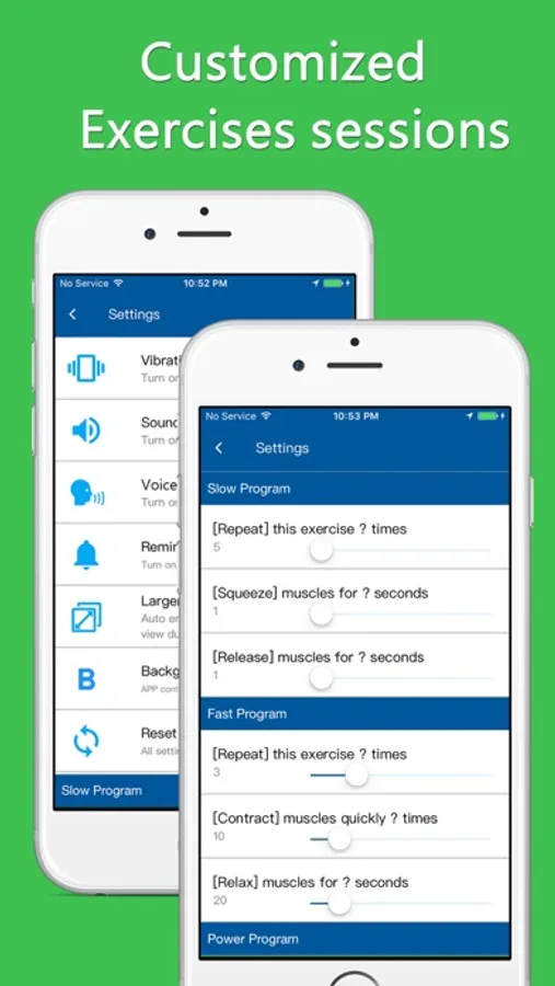 Kegel Talent APP is designed with default exercises for beginners. Once you've acquired adequate strength in your muscles, you can setup the APP to take bigger exercises.