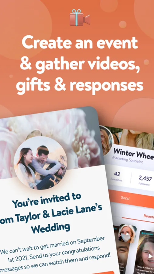 Record a video greeting, add optional cash gifts and see your recipient's reaction to your message. Reactions are saved for the sender and receiver to cherish forever. Cash out your gifts to your Venmo or Paypal account with no fees.