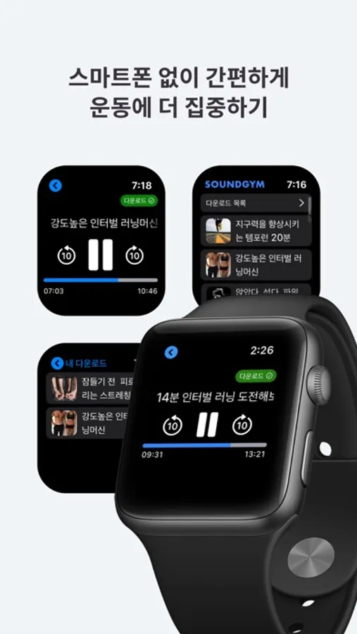 - 사운드짐 앱 하나만 있다면 침대에서도, 사무실에서도, 그리고 계단에서도 일상은 운동이 됩니다.
