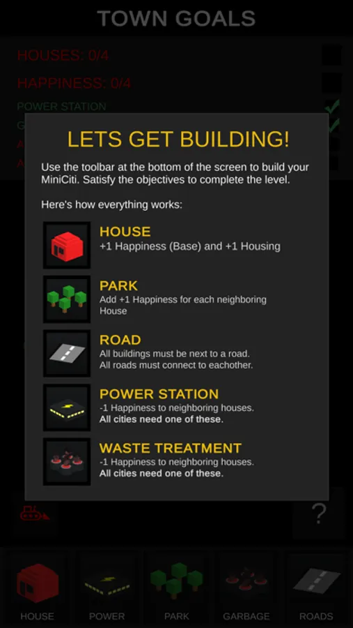 Every Town needs Power, Garbage and a certain number of Happy Homes.