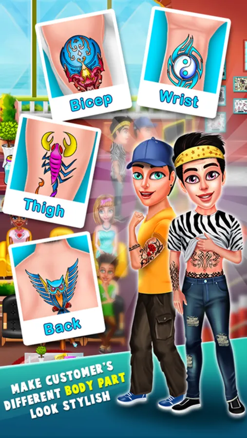 Hey Tattoo Lovers!! Here's one of the best game for a tattoo artist or a tattoo lover. Do play this cool game and run your own tattoo shop by drawing stylish tattoos. This tattoo shop game includes a perfect gameplay for you. Different artistic tattoo designs will be there in your shop. So many customers will come to your workshop to have an amazing tattoo on their body part. Enhance your tattoo shop by serving a number of customers. So what are you waiting for guys? Install this game and enjoy its addictive gameplay. Don't forget to share it with your friends & family.