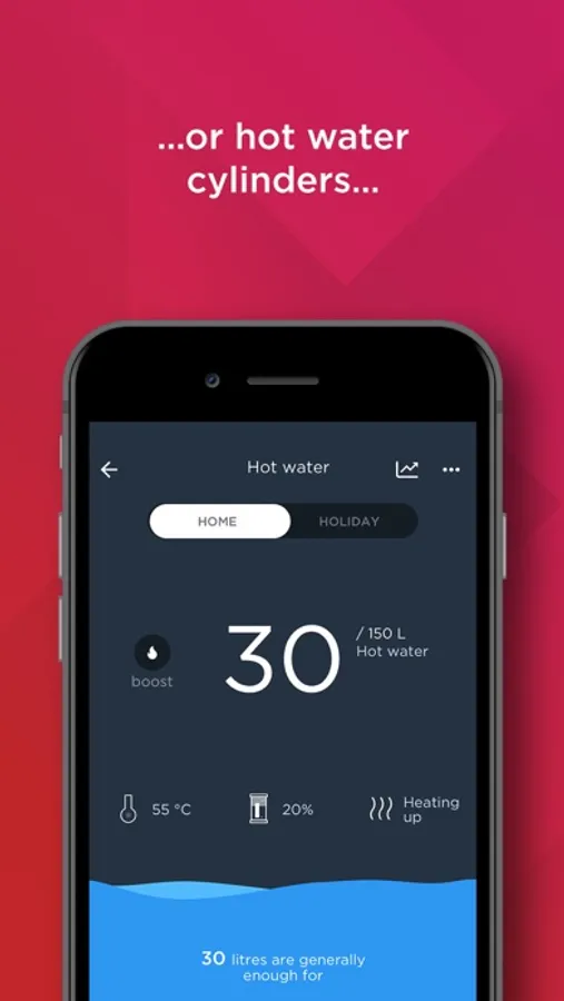 Control your hot water. See how much water is available at the set temperature (Requires a compatible Dimplex Quantum Water Cylinder QWCd).
