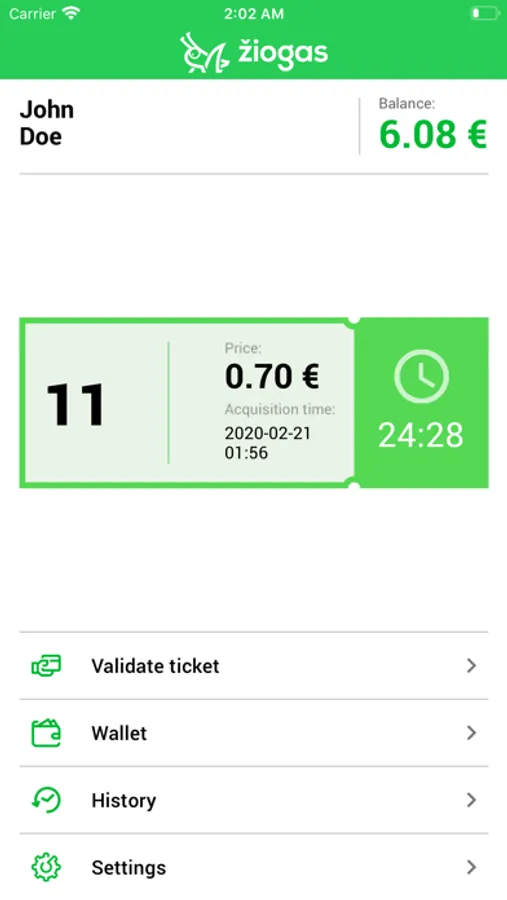 Smartest way to pay for your travel on Kaunas buses and trolleybuses. Validate your ticket by scanning QR or inputting three-digit vehicle code (once embarked through the front door). Do not forget to present it to the driver. Once monthly cap is reach enjoy free of charge services for the rest of the month. Once you get it on your device, it takes a minute to register, set up and top up your account. 2 euros top up minimum applies. If you are entitled to and will be using concessions, name and surname is required.