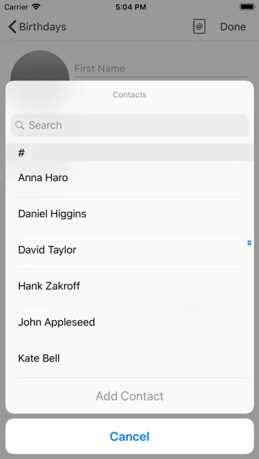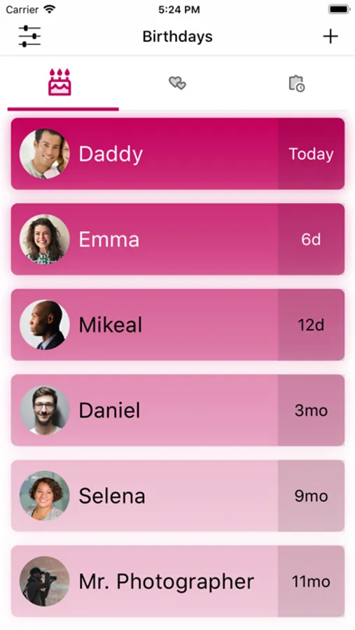• import birthdays/anniversaries from contacts, tap settings on top left and choose contacts, then allow app to search your phonebook and then you see the result.