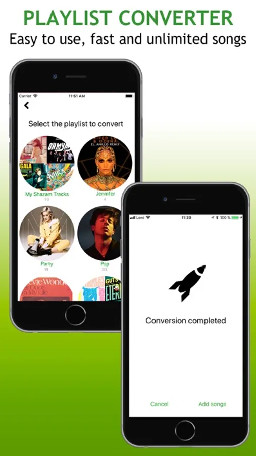 Unofficial product. This application has been developed by Kissapp and it is under their responsibility. This application does not receive any endorsement or is affiliated in any way to Spotify or Apple Music, their names, trademarks, or any other aspect of this application are trademarks and property of their respective owners.