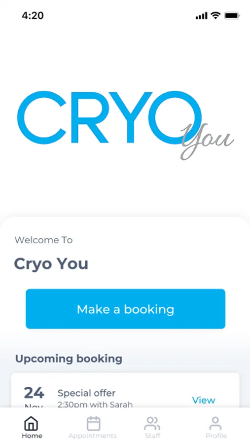 The Cryo You app makes booking your appointments and managing your loyalty points even easier. You're just a few taps away from feeling good and looking great!