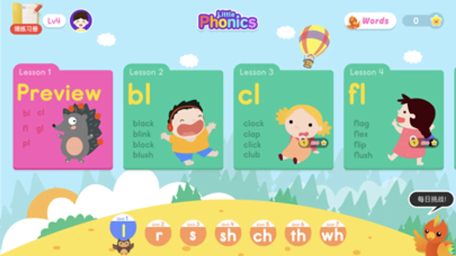 Level1是26个字母的认知拼读,同时认识104个单词;