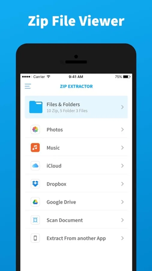 You can also zip or unzip files from iCloud, Google drive or Dropbox