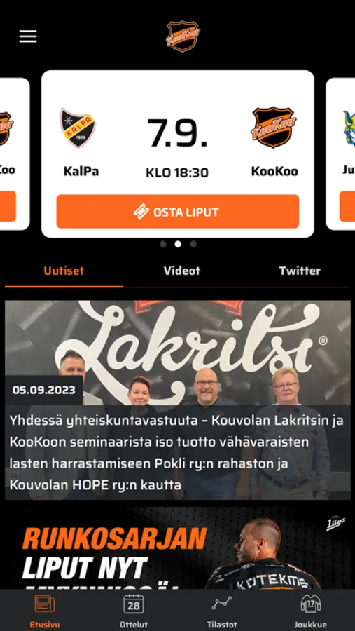 Lataamalla pysyt ajan tasalla KooKoon ajankohtaisista asioista ja kuulet uusimmat jutut ensimmäisenä. Sovelluksen kautta pääset seuraamaan KooKoon sosiaalisen median kanavia ja pystyt seuraamaan KooKoon liigaotteluiden tilanteita reaaliaikaisesta tulospalvelusta.